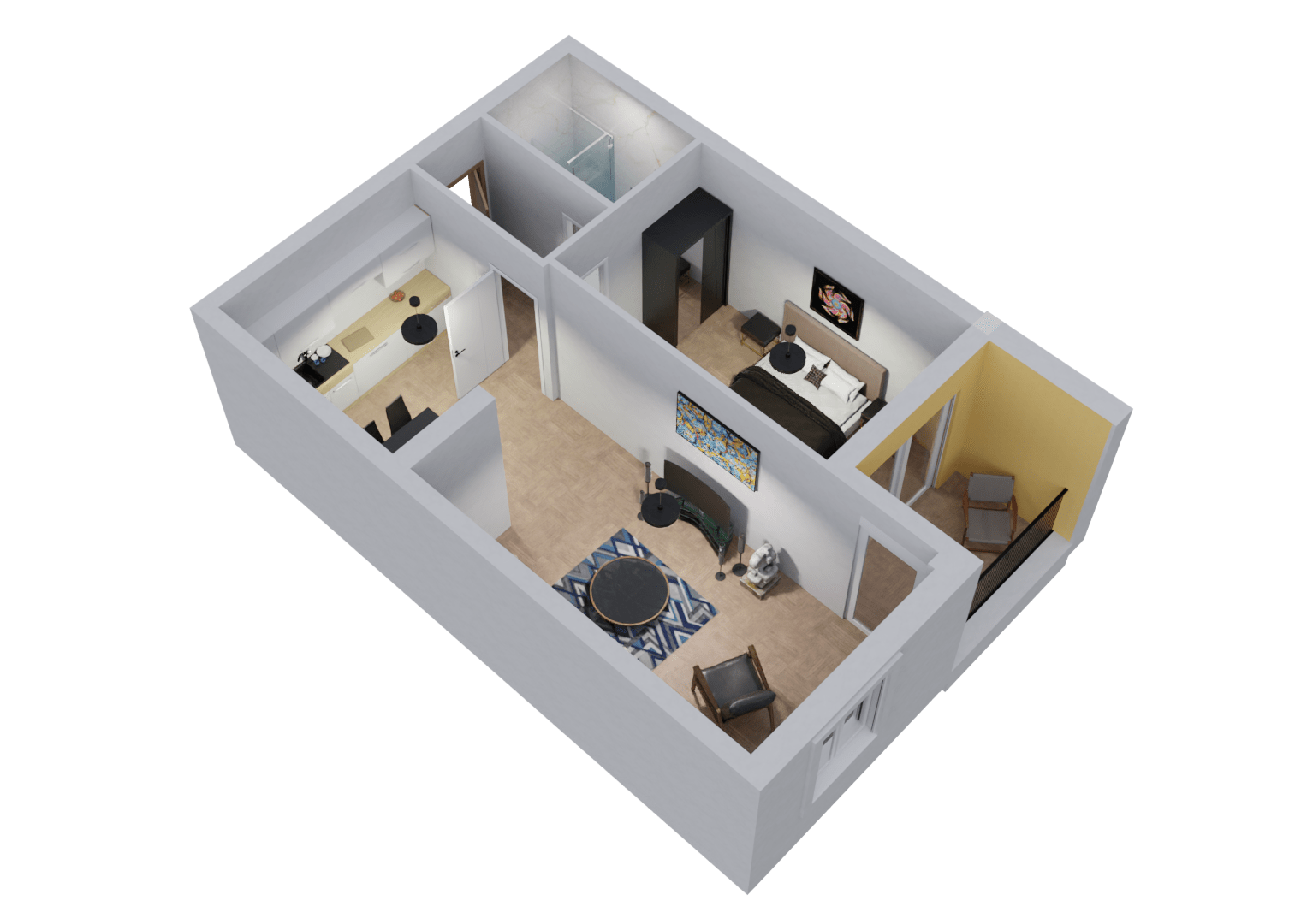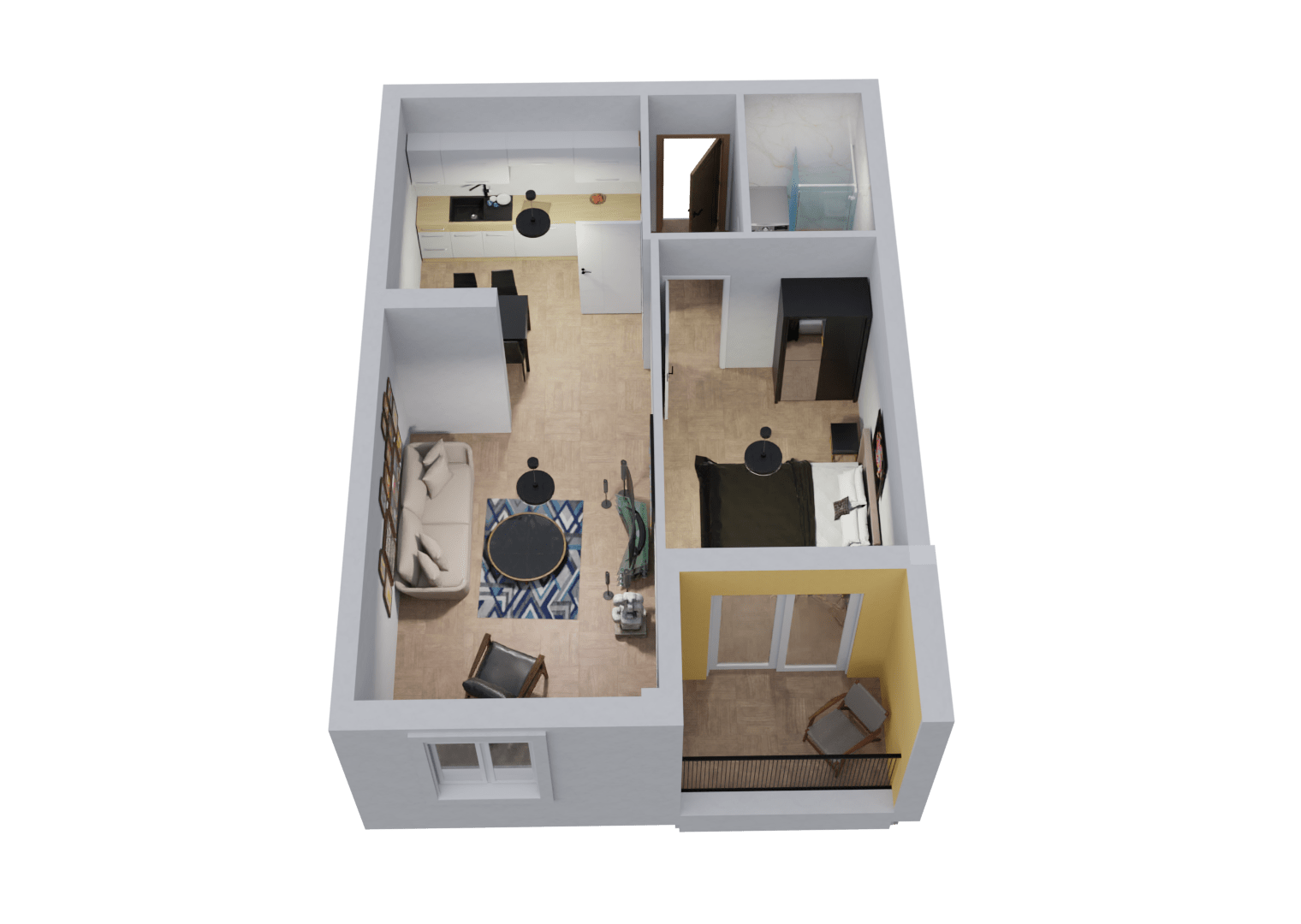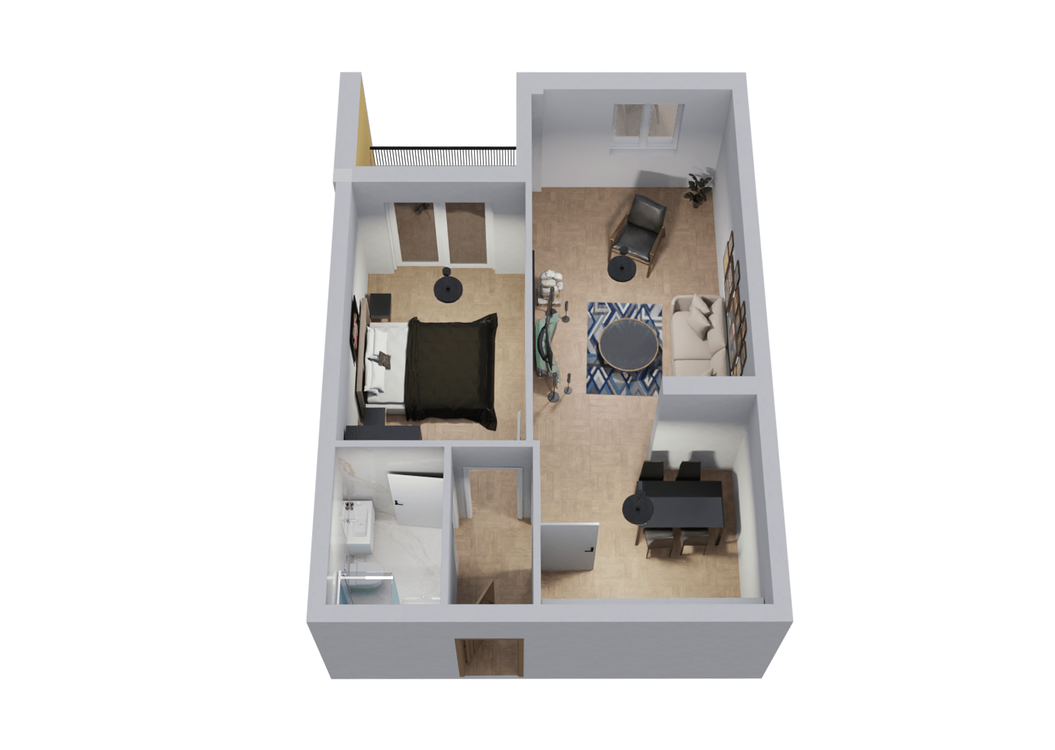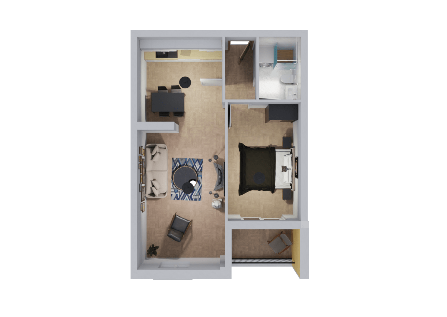 One – Bedroom Apartment PD05 hodnik 2.88 kupatilo 3.84 Spavaća soba 12.74 dnevni boravak 29.47 terasa 4.47 Ukupna površina 53.40 Download pdf