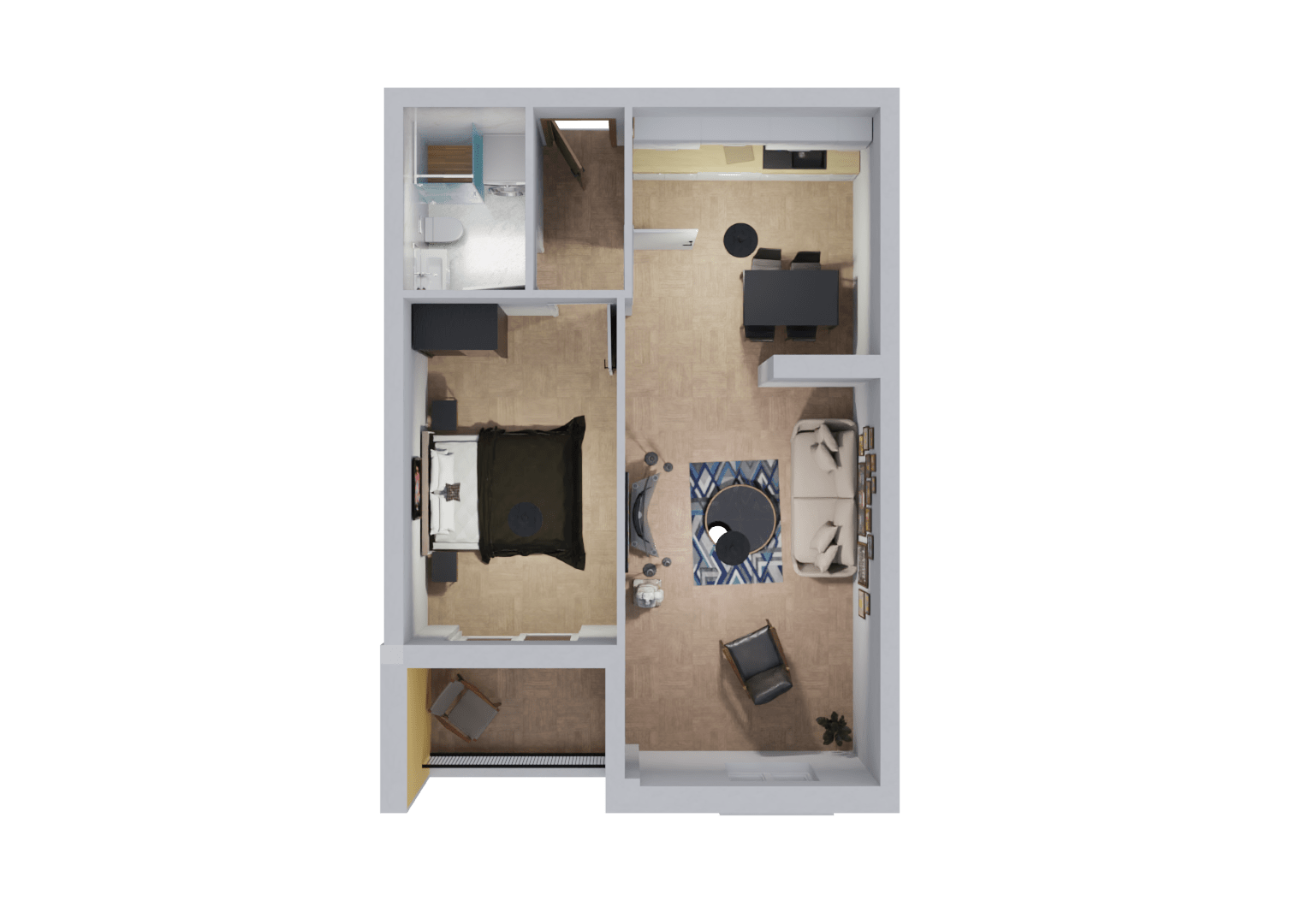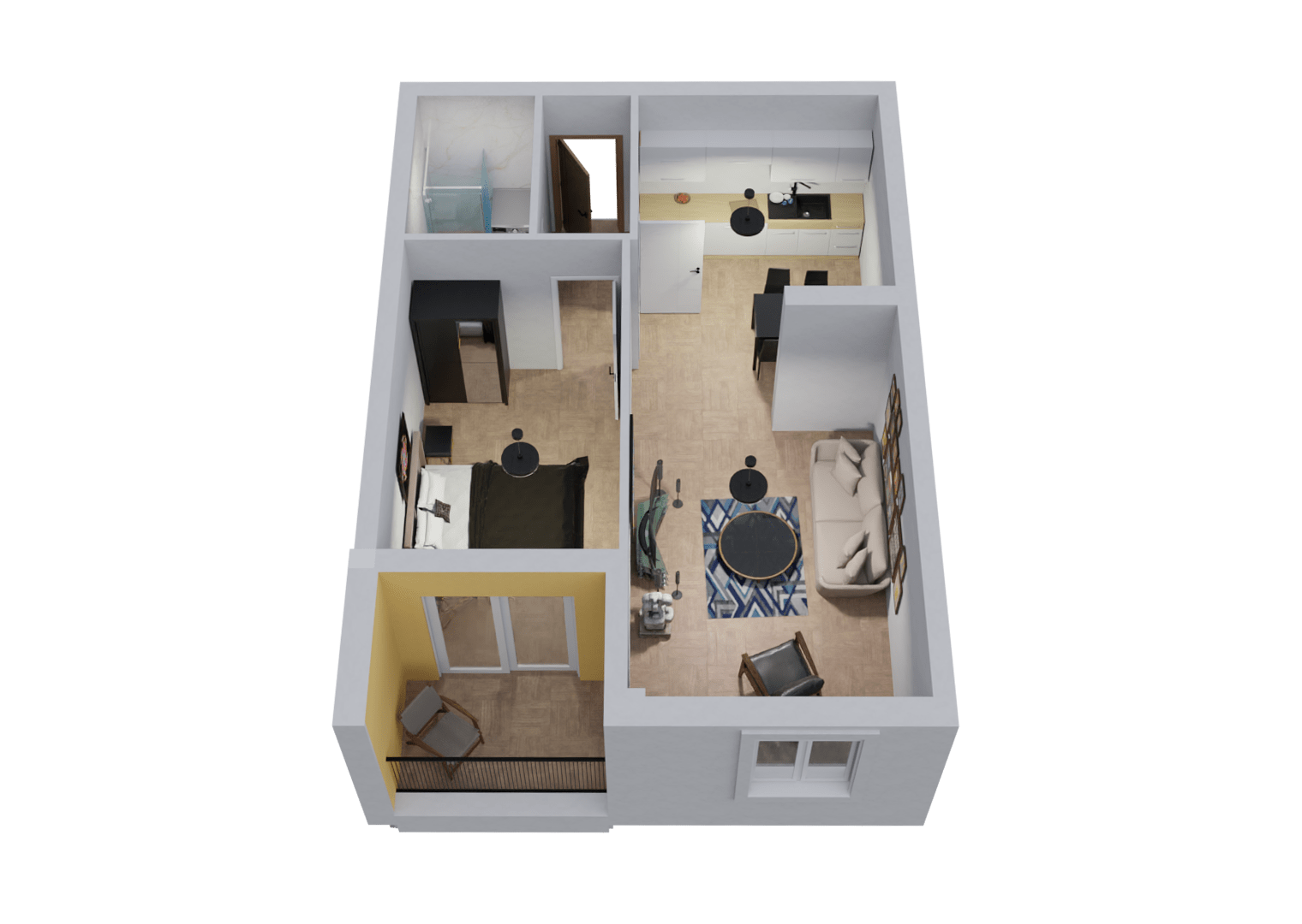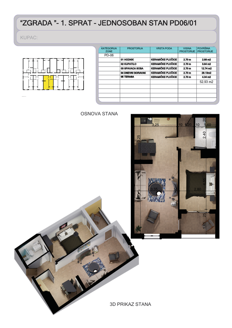 One – Bedroom Apartment PD06 hallway 2.88 bathroom 3.84 bedroom 12.74 living room 29.13 terrace 4.34 total surface 52.93 Download pdf