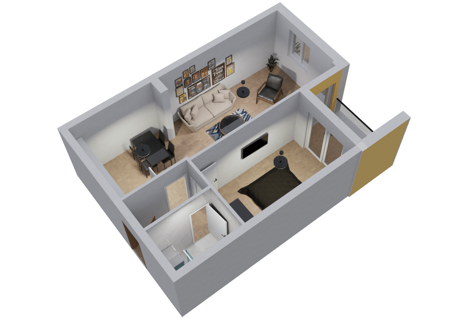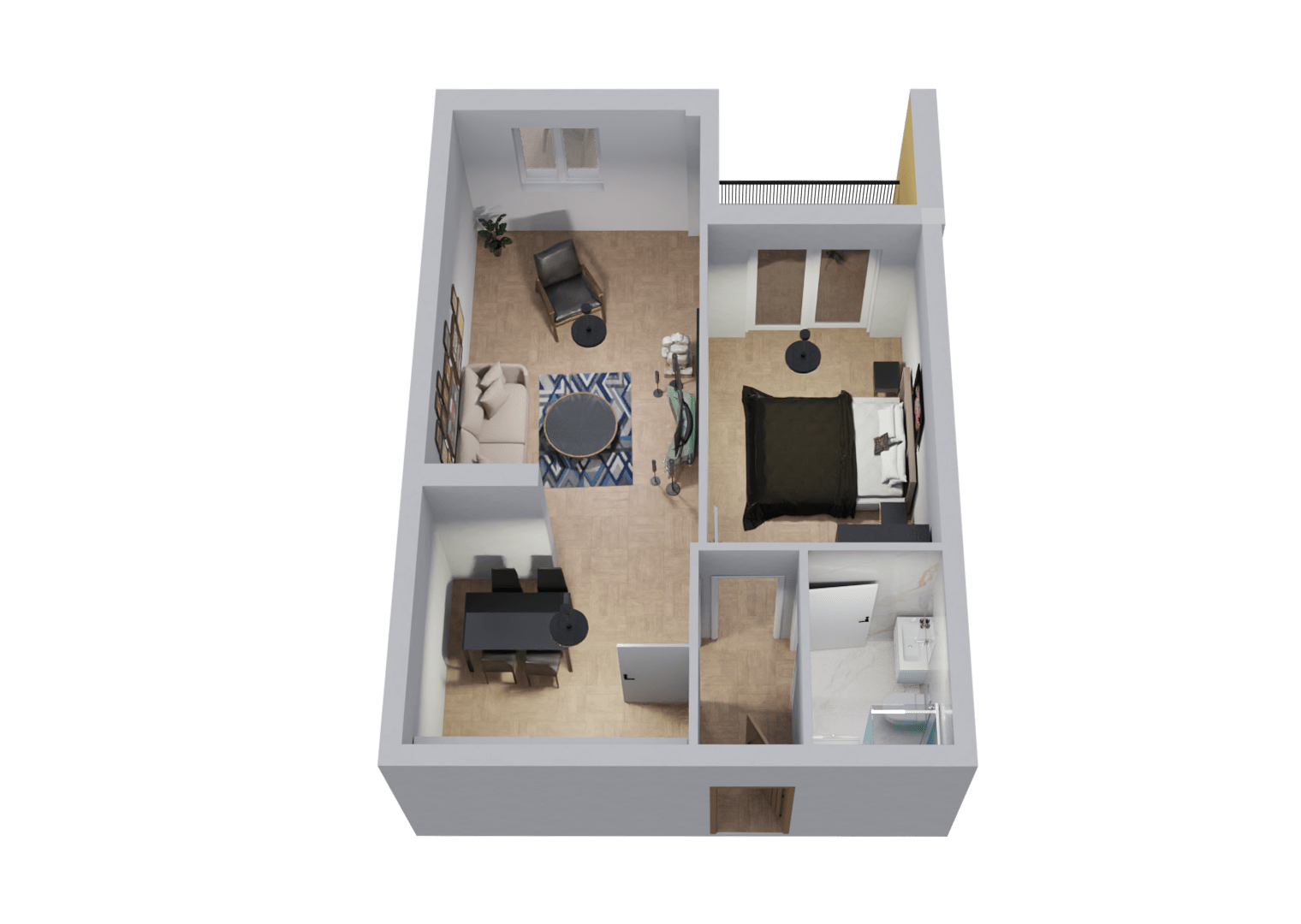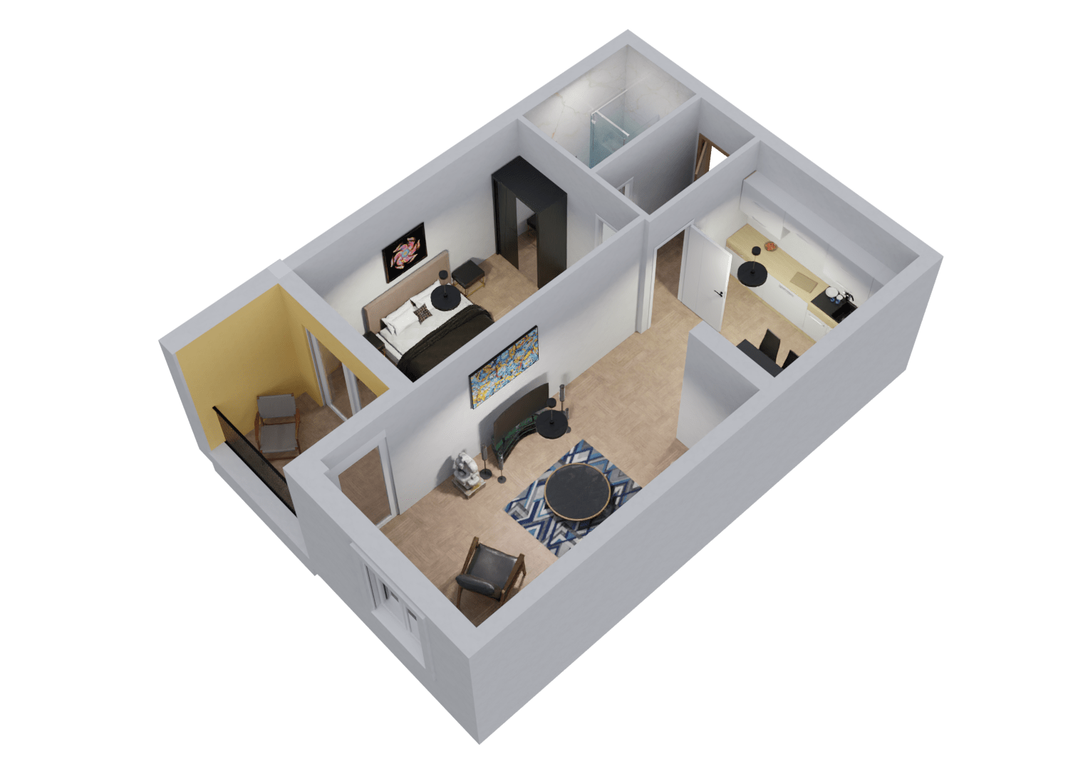 One – Bedroom Apartment PD06 hallway 2.88 bathroom 3.84 bedroom 12.74 living room 29.13 terrace 4.34 total surface 52.93 Download pdf