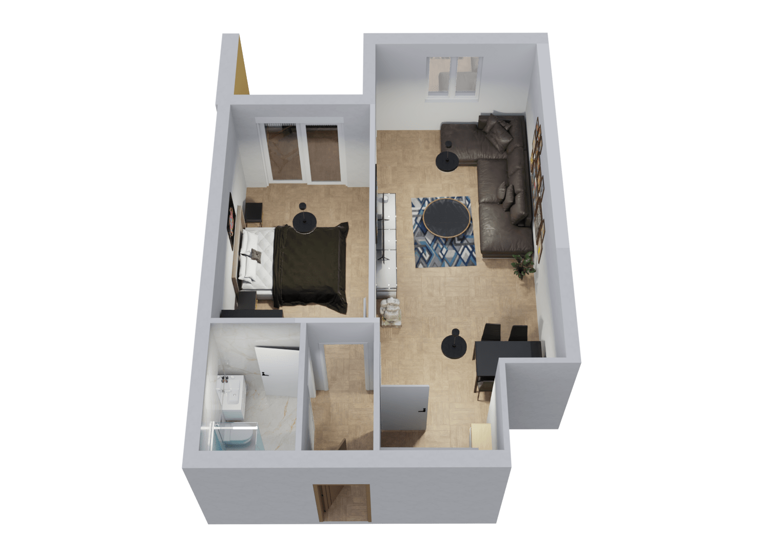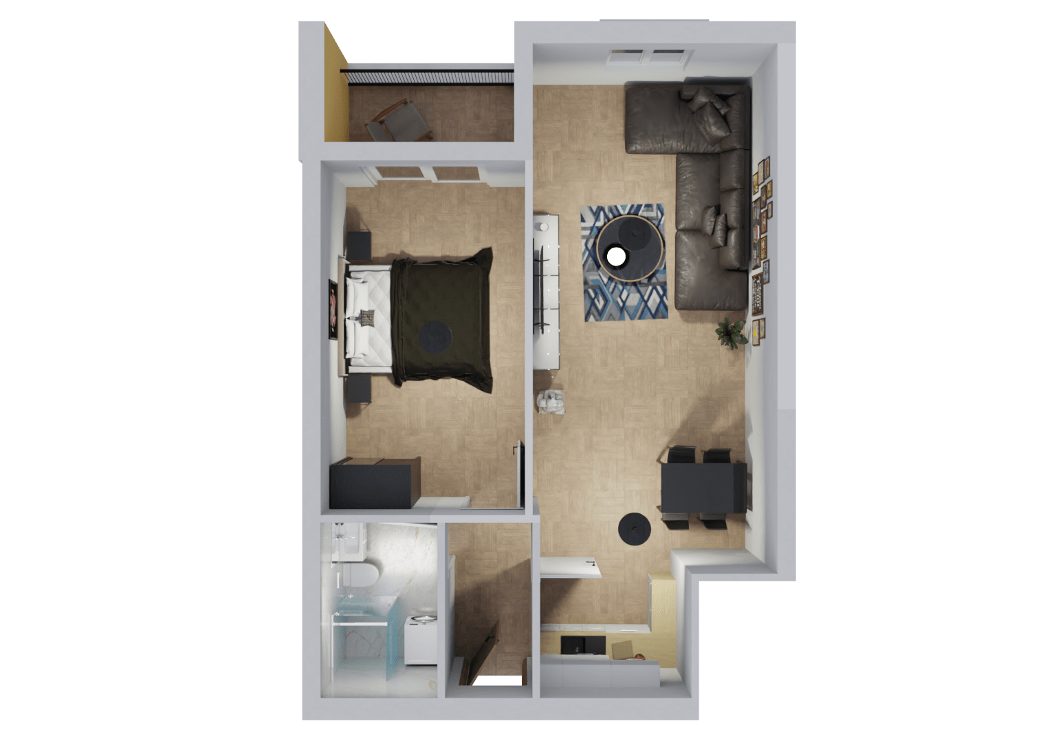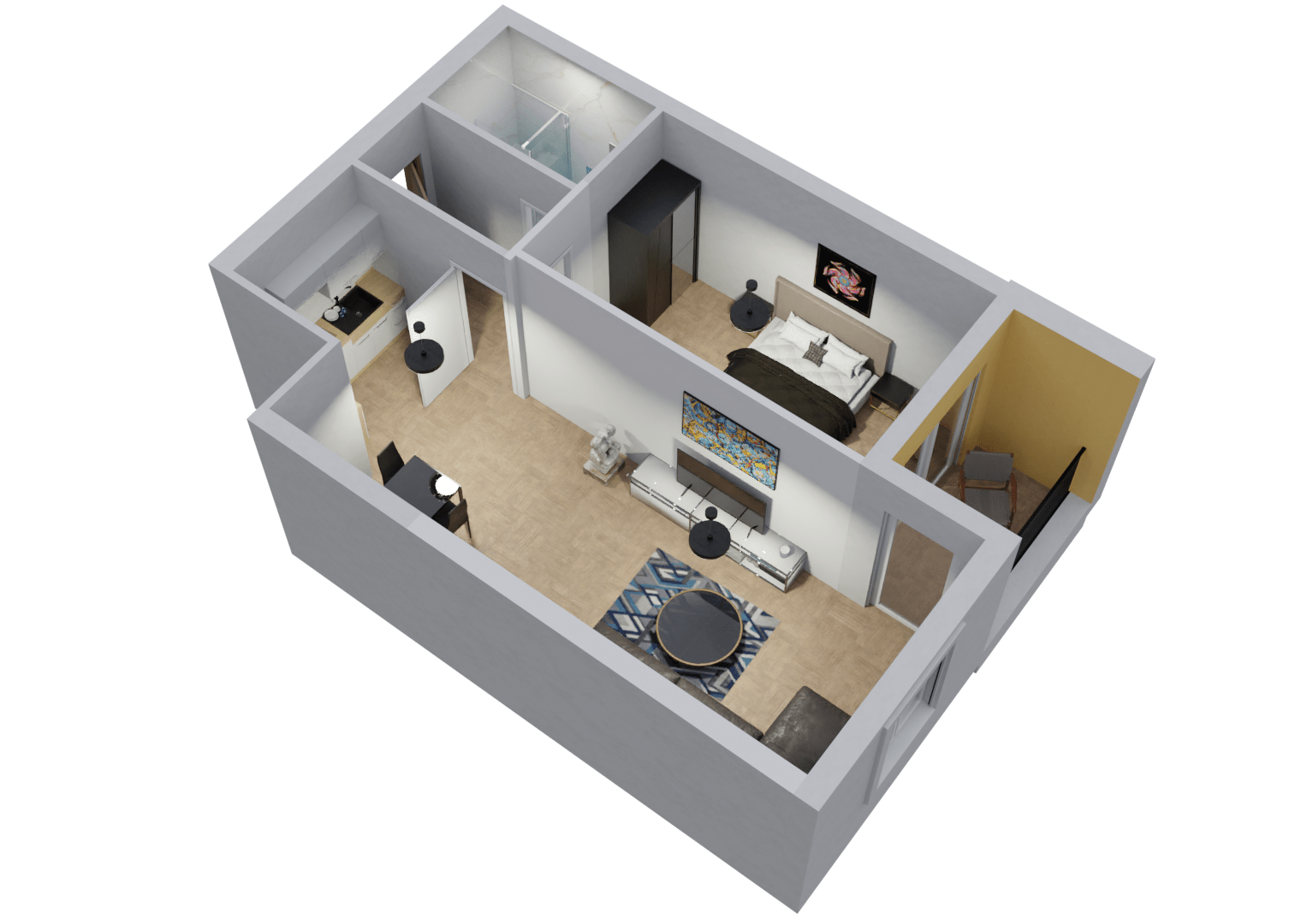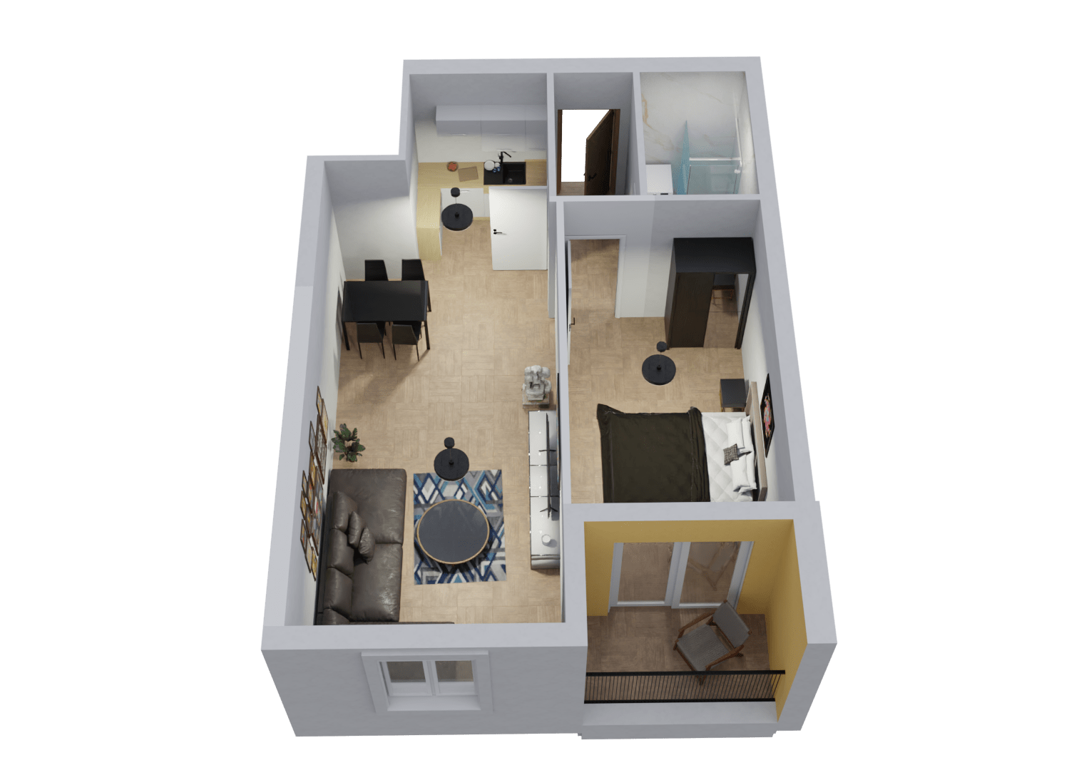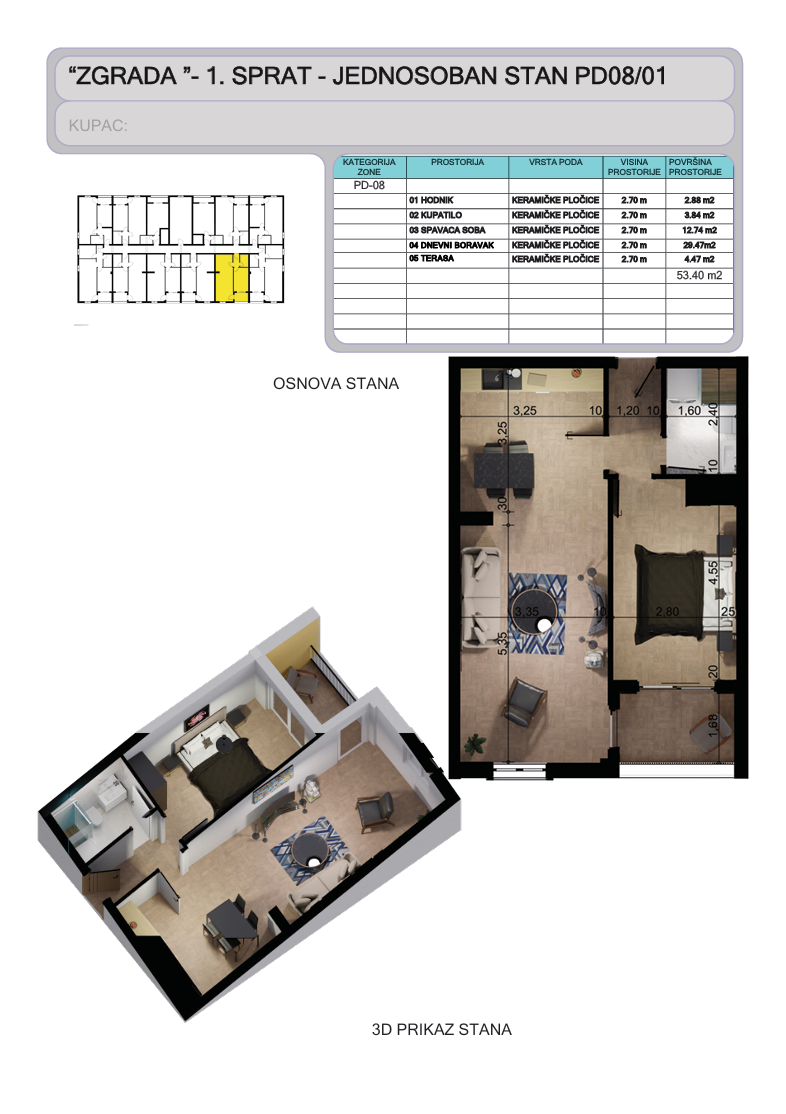 One – Bedroom Apartment PD08 hallway 2.88 bathroom 3.84 bedroom 12.74 living room 29.47 terrace 4.47 total surface 53.40 Download pdf