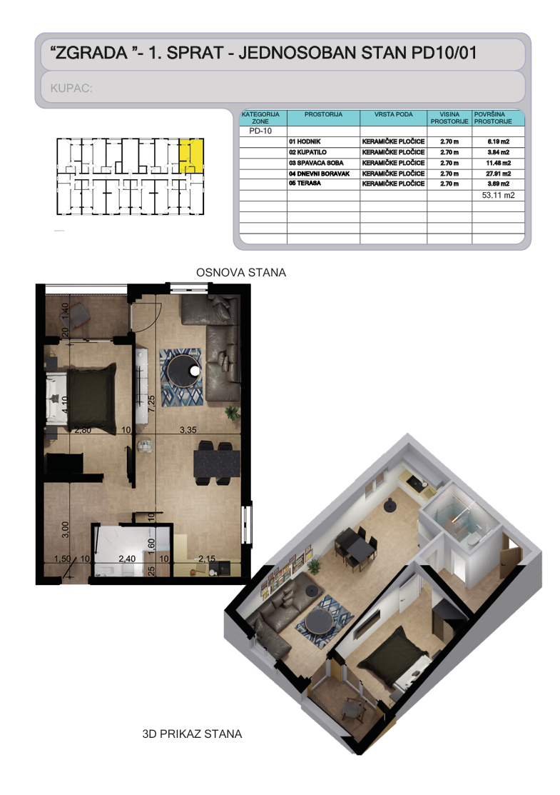 Two – Bedroom Apartment PD10 hallway 6.19 bathroom 3.84 bedroom 11.48 living room 27.91 terrace 3.69 total surface 53.11 Download pdf