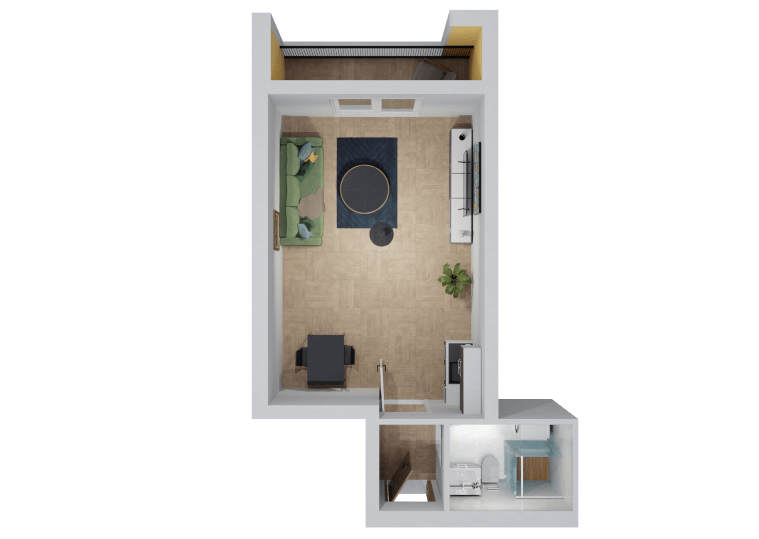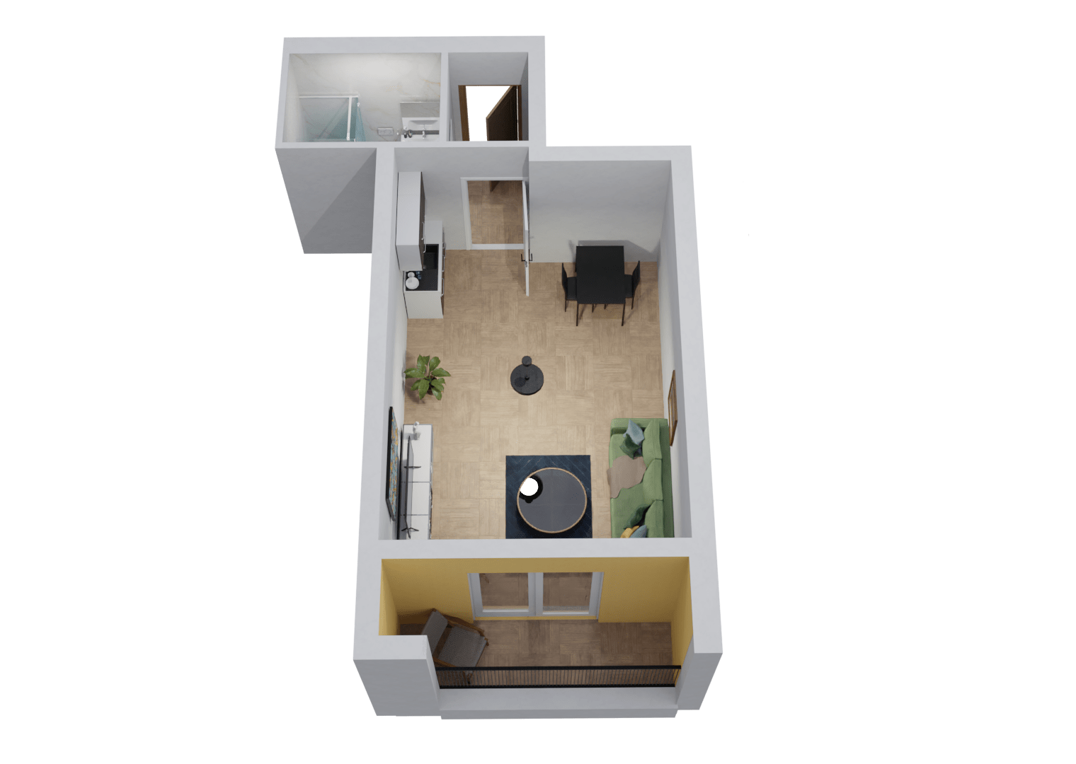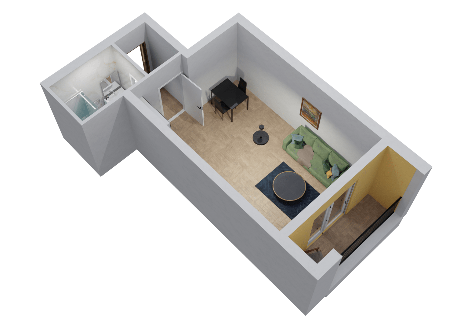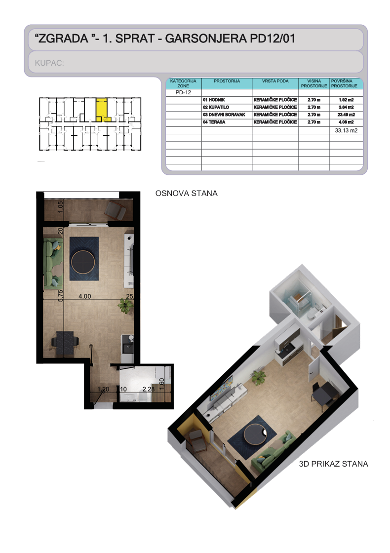 Studio PD12 hallway 1.92 bathroom 3.64 living room 23.49 terrace 4.08 total surface 33.13 Download pdf
